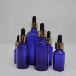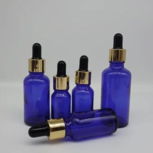 Flacon Compte-Goutte En Verre Bleu De 10ml a 100ml Avec Bouchon Doré-Noir