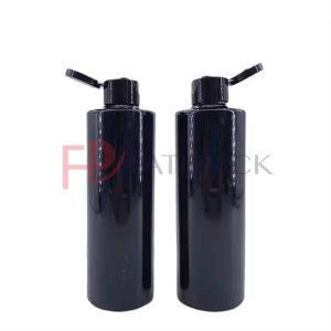 Bouteille Cosmétique en Plastique Noir Élégant avec Bouchon à Rabat