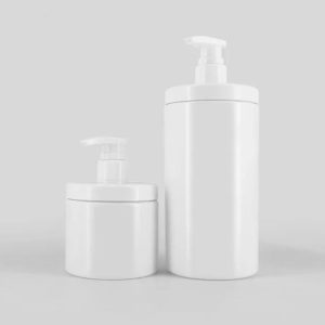 Bouteilles En Plastique Blanc Cosmétiques Avec Bouchons Dispenser Blanc Et Noir