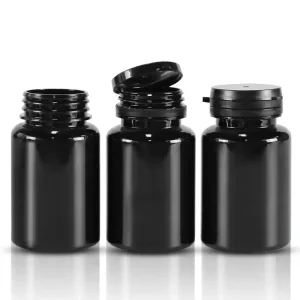 Pot en Plastique Noir pour l’emballage de Pilules et Capsules avec Couvercle
