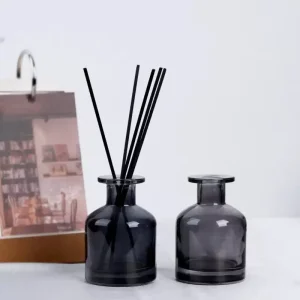 Diffuseur d’Arôme Élégant : Flacon en Verre Noir Semi-Transparent avec Roseaux Noirs