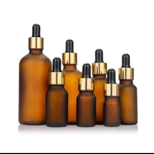 Flacon Compte-Gouttes en Verre Givré – 10 ml à 100 ml avec Bouchon Doré-Noir